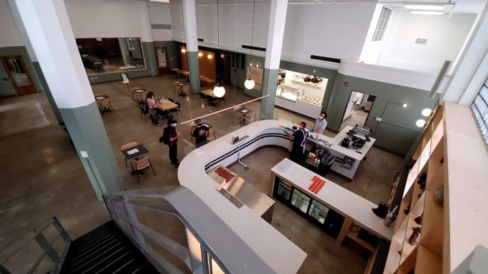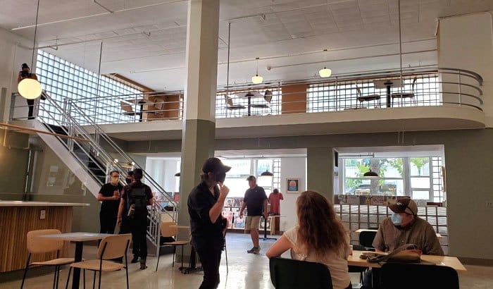 With the record press installed and running on the main floor, you’ll be able to watch it do its magic through large interior windows while you have lunch, sip a latte, or meet with friends for cocktails.