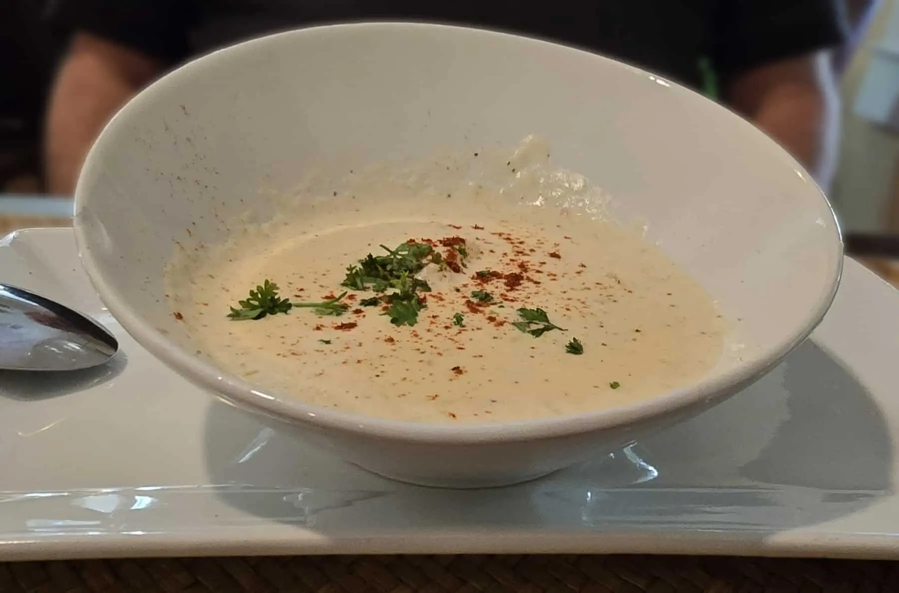 I was disappointed with the absence of visual decor. As we are upstairs the “window coverings were broken, too long for the windows and offered our only vista. The only other decor was a fresca of sorts. I ordered the trout. The rice and accompanied sauce was delicious ,while the fish was ok, it lacked moisture and was flat in flavor. I felt the overall presentation could have been improved with a crisp garnish not limp carrot stems.