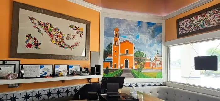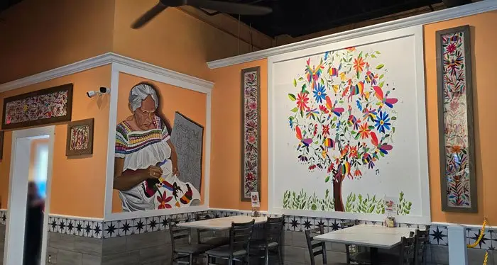 Brothers Juan, Enrique, and Aurelio Hernandez have family roots in Hidalgo, Mexico. They’ve brought their food as well as their noticeably different decor, “Otomi” art. I noticed and loved it immediately.