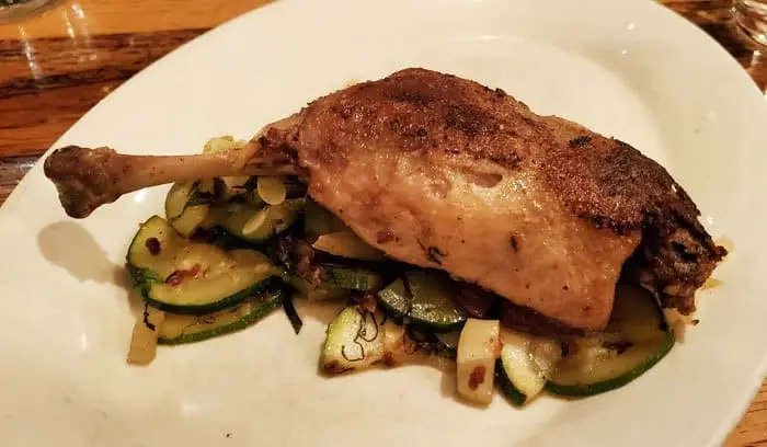 Adele’s – not the singer – was our choice for our final dinner in Nashville. We wanted to wrap up our weekend getaway with a special evening and excellent food. We experienced elevated, as opposed to fine (although it was fine), dining. They refer to their dishes as “comfort food”, which I’d definitely agree with. We were seated with a good view of where the magic happens – their very open kitchen. Prep, plating, garnishing, a wood-fired oven, and a wood-fired grill. Our meal and evening were deliciously perfect. Note that they change their menu regularly, so items here may not be available when you go to Adele’s.