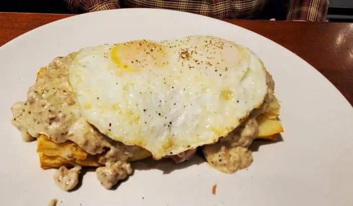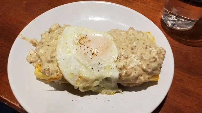 Best biscuit I’ve had to date. Crisp/crunchy outside – light, fluffy inside. Not embarassed to say I could easily make of meal of their biscuits with jam. If I did that, I’d mis out of the very tasty sausage gravy, though. Feeling adventurous? Check out their “Brunch favorites with a twist”. They serve up very good espresso drinks and take the time to top them off with a rosetta.