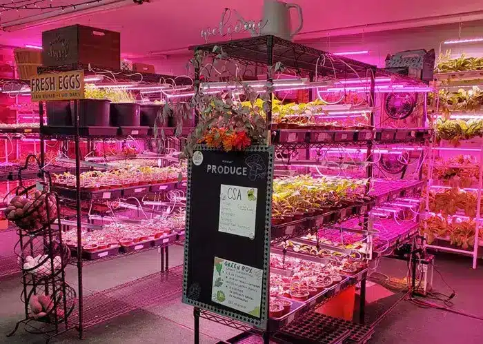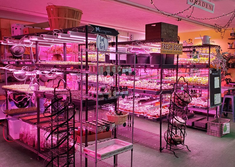 The Stumps refer to their enterprise as a Hydroponic & Urban Farm, producing Clean & Real Food. Hydroponic in that they are growing hydroponically in over 2,000 square feet indoors. Urban in that they’re growing outdoors and in greenhouses on an urban-sized lot.