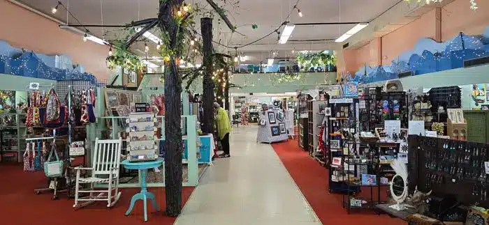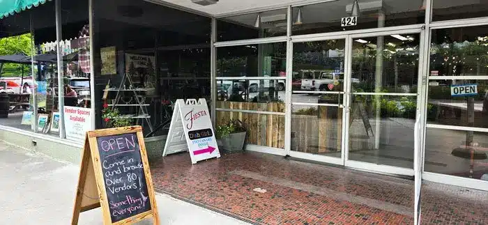 - 424 N Main St – The Village Green Antique Mall space is now The Emporium On Main with quite a variety of vendors. They might be right when they say, “Over 80 Vendors! Something for everyone!” They advertise “Handcrafted, Handmade, Upcycled Resale, Vintage, Antiques, Ladies Boutique, Doggy Boutique, General Store, Fiesta Dinnerware, Collectibles, Woodworking, Stained Glass, Pottery, Fabric Art, and Artists – all under one roof!” I can confirm there’s plenty to choose from and it feels bright and fresh inside!